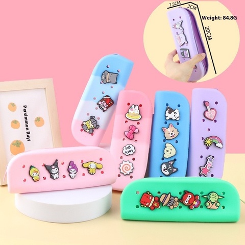 Estuches de lápices de silicona impermeables con cremallera creativa personalizada de fábrica Cajas de papelería DIY lindas para estudiantes hechas de plástico